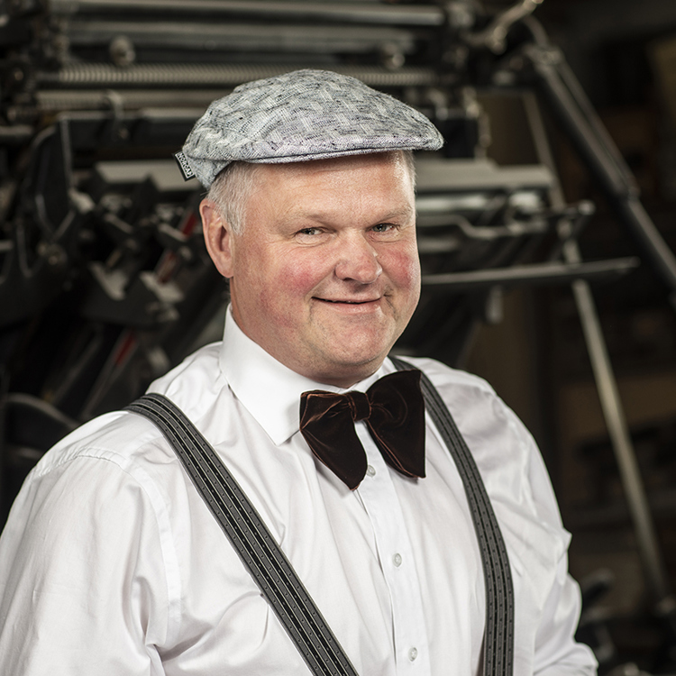 Et fyrverkeri av en trykker! Tom Arne trives best med mange baller i luften. Han har lang erfaring, og har blant annet drevet eget trykkeri. Effektivitet er noe han etterstreber. Det gnistrer når Tom Arne er på jobb!