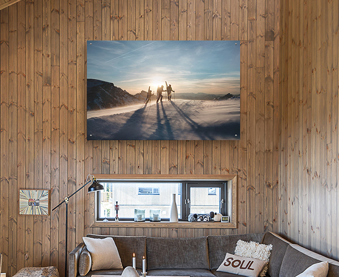 Veggbilder med fotokunst tar seg flott ut i store formater. Vi trykker på alle flater; aluminiumsplate, lerret og kunstpapir. Ønsker du veggdekorasjon, for eksempel plater i en spesiell form, hjelper vi deg også med det. Se eksempler på hva vi har gjort for andre, og bli inspirert!