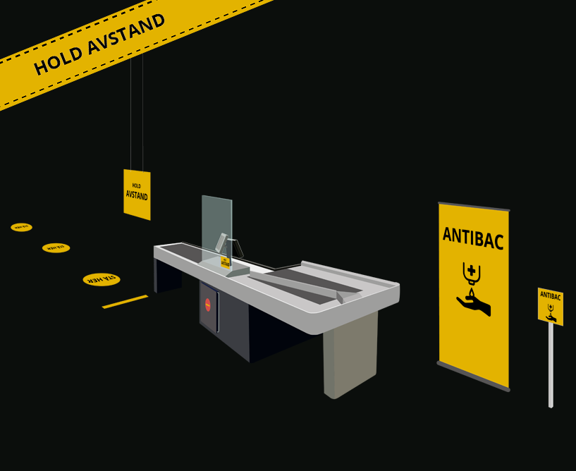 Vi leverer gulvfolie og merker som gjør at det blir enklere for dine kunder å holde seg innenfor sikkerhetssonen til andre som i dag anbefales. Dette kan være merker både på gulv, dører og glass eller en roll-up som gir nærmere informasjon. Plexiglass med eller uten trykk, plakater mm. Vi har standard størrelser, men kan naturligvis tilpasse til det du trenger.